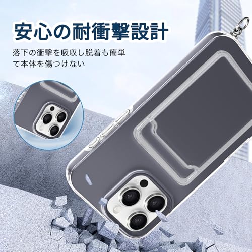 iPhone 16 用 ケース 背面ポケット カード収納 ショルダー iPhone 16 用 カバー 斜めかけ 縄掛け 肩掛け 首掛け ストラップ付き 薄型 軽量 TPU バンパー 韓国 可愛い かわいい アイフォン16 用 スマホケース (ブラック)