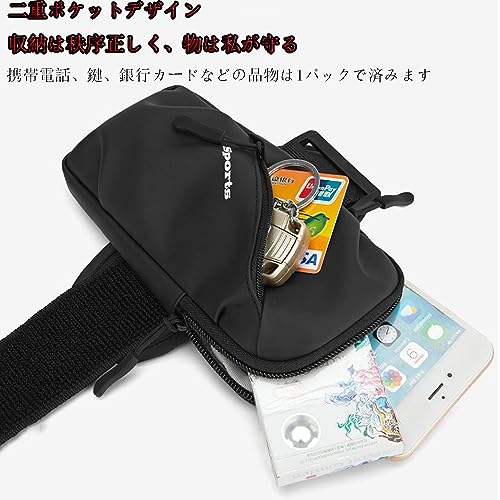 【2つのポケットで多収納を実現】 このランニングポーチは運動時にお使いの携帯電話を保護します。ポケットが2つあるので、携帯電話と他のものを分けることができ、激しい運動中に携帯電話に傷しません。厚みのスマホケースを取り付けても入れることができるので、ダブルファスナー仕様でランニング時に落下防止します。
