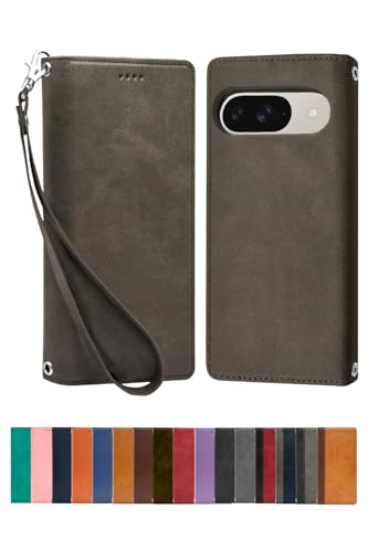 シズカウィル Google Pixel9 / Pixel9 Pro ケース カバー 手帳型 本革調 レザーケース グレー 1個入り