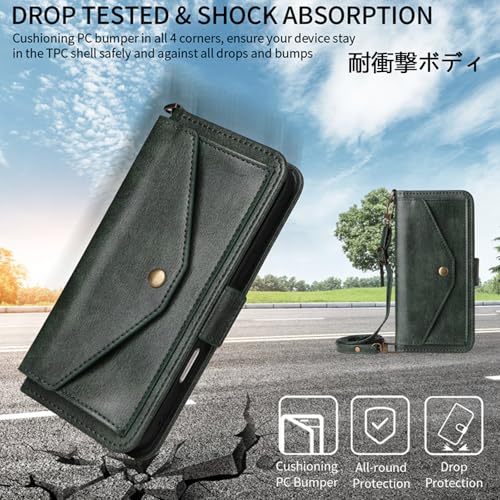 Galaxy A25 5G 手帳型 GalaxyA25 5G SC-53F SCG33 通用 ケース ギャラクシー A25 スマホケース ギャラクシー エー25 手帳型 エー25 5G 手帳 SC 53F case Heofuixt カード収納 適用 スナップ 肩掛け ショルダー 調節可 ストラップ 斜めがけ ポシェット ショルダーケース ストラップ付き カードケース レトロ グリーン