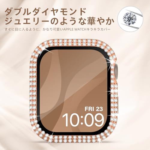 「キラキラ保護カバー」すぐに目に入るように、かなり可愛いアップルウォッチ キラキラカバーです。ダブルダイヤモンドがキラキラしていてジュエリーのような華やかで高級感を醸し出していて、みんなにオシャレって言われたデザインです。強化ガラスフィルムとPCフレームはApple Watchを引っかきキズ、衝撃、偶発的な落下から保護できます。