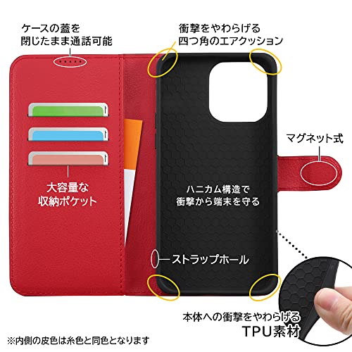 レイ・アウト iPhone 14 Pro Max用 ケース 耐衝撃 手帳型 ケース シンプル マグネット/ブラック/レッド