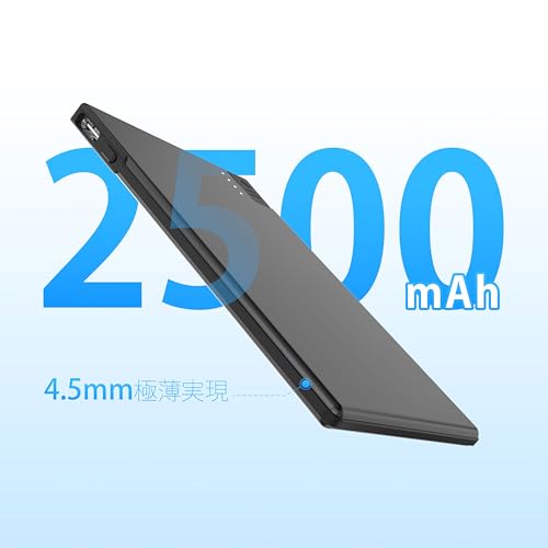 軽量小型・ミニモバイルバッテリー:2500mAhのモバイルバッテリーは世界最薄の軽量バッテリーです。厚さはクレジットカード4枚分ほどしかありません。高品質な鋼材で作られており、滑らかでスタイリッシュな質感があります。超薄型で超ミニサイズ!財布やポケット、バッグなどに収納しても邪魔になりません。