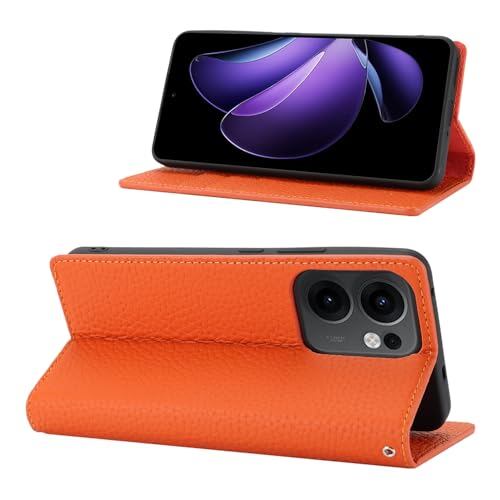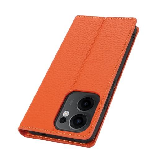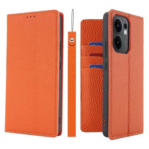 Pelanty for Oppo Reno13 A ケース手帳型 for Oppo Reno13A スマホケース 牛革製品 本革レザー 財布型カバー カード収納 スタンド機能 内蔵マグネット 手作り柔らかい オッポ リノ13A 携帯カバー ストラップ付 ヘッドフォンケーブル 耐衝撃 オレンジ