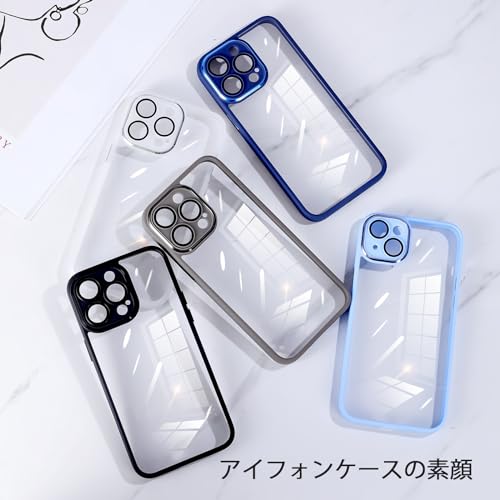 Donocao アイフォン15プロケースクリア シリコン耐衝撃 iPhone15pro用ケース薄型 透明アクリル背面プレートフィット 滑り止め カメラカバー付き レンズ保護 指紋防止 軽量 防水防塵 可愛い 御洒落 薄ブルー