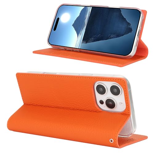iPhone 16 Pro Max 用ケース アイフォン 16プロマックス 手帳型 アイホン16proMax カバー いPhone16proMax 手帳ケース iphone 16 pro max 手帳型ケース iphone16proMax スマホケース case 適用 zouzt 牛革 本革レザー 本皮 ストラップ付き カード収納 スタンド マグネット 耐衝撃 おしゃれ 6色 オレンジ