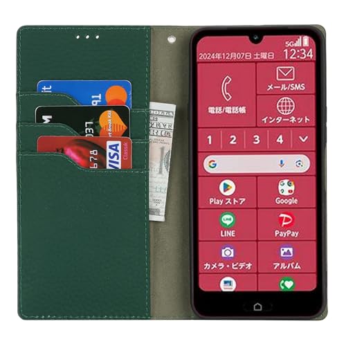 らくらくスマートフォン a A401FC ケース 通用 らくらくスマートフォン Lite MR01 手帳型 FCNT らくらくスマートフォン a カバー A401FC 手帳ケース らくらくスマートフォン Lite スマホケース MR01 携帯カバー case 適用 zouzt 牛革 本革レザー 本皮 ストラップ付き カード収納 スタンド マグネット 耐衝撃 おしゃれ 6色 ダークグリーン