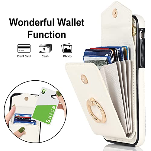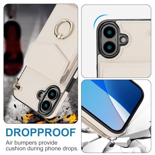 GOKIGIOD 適用 iPhone 16 ケース リング付き 背面 財布型 カード入れ いphone16 リング カバー ストラップ アイフォン 16 スマホケース 背面ポケット カード収納 可愛い お洒落 RFIDスキミング防止機能 カードポケット ハンドストラップ 縄掛け 携帯カバー ベージュ ホワイト Beige white