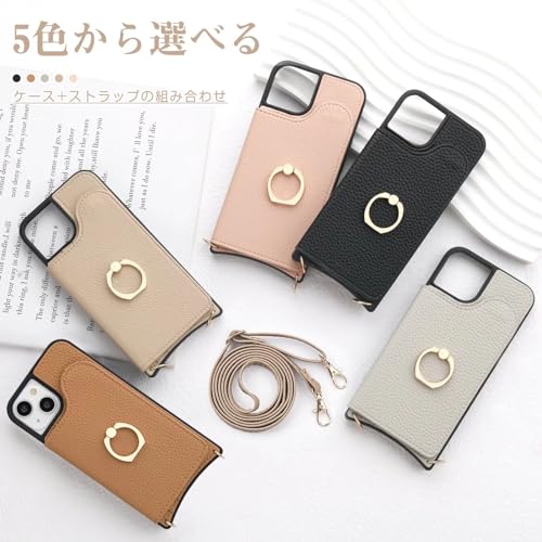 3CCart 対応 iPhone 15Pro Max ケース 手帳 ショルダーストラップ iPhone 15Pro Max 手帳型 ケース 背面 カード収納 スマホリング スタンド カードホルダー アイフォン 15プロ マックス ケース 財布型 カバー おしゃれ 女性 斜め掛け スタンド機能 ストラップ着脱可 落下防止 コーラルピンク