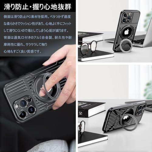 【放熱性高い+超強耐衝撃性】通気口付きのアルミ合金を採用、市販の製品を凌駕する放熱性能が持っています。ゲーム・高画質動画などの負荷が大きいアプリを使ったり、充電しながら操作したりすると、iPhoneは熱を帯びやすくなりがち。熱がこもると故障やバッテリーの劣化につながるため、iPhoneを長時間使うことが多い人はぜひこの「放熱+耐衝撃」iPhoneケースを候補にしてみましょう。