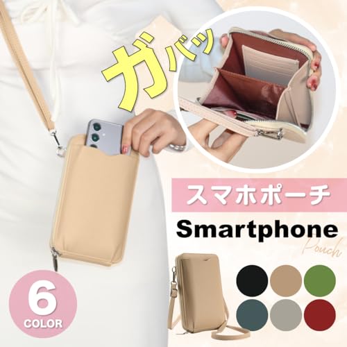 grooblue スマホポーチ 縦型 ショルダーバッグ レディース スマホポシェット 携帯ポーチ 斜め掛け シンプル レザー調 軽量 お出かけ用 ブラック
