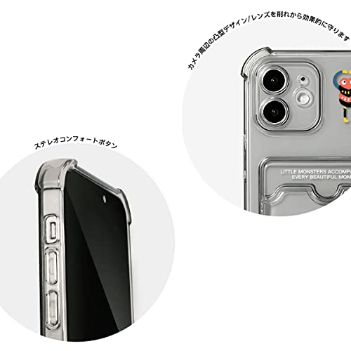 Attract スマホケース 対応 iphone 12 用 ケース case 透明 可愛い ポケット付き 背面収納 アイフォン ケース 小怪物 アイフォン カバー おもしろ 怪獣ちゃん かわいい カード収納 かっこいい キャラクター かわいい アニメ 耐衝撃 傷防止 スリム軽量 (クリアブラック, iphone 12 用)