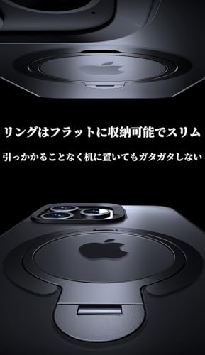 2024最新 ダブルリング iPhone 15 Pro Max ケース スタンドながらMagsafe対応 定点360度回転 フラット収納スタンド リング 縦置き対応 マット感 薄型 半透明 アイフォン 15 Pro max リングケース 米軍MIL規格 耐衝撃,黒