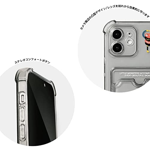 Attract スマホケース 対応 iphone 16Plus 用 ケース case 透明 可愛い ポケット付き 背面収納 アイフォン ケース 小怪物 アイフォン カバー おもしろ 怪獣ちゃん かわいい カード収納 かっこいい キャラクター かわいい アニメ 耐衝撃 傷防止 スリム軽量 (クリアブラック, iphone 16Plus 用)