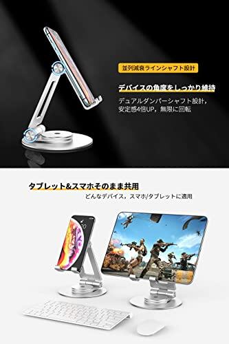 ➤【360°回転スタンド】2軸で自由な角度調整可能です。 台座が360度回転するため、スマートフォンやタブレットを乗せたまま、思いのままに回転、最適な角度に調整して 見せたい向きに自由に回転させることが出来ます。また、角度調整可能で、自分に合った快適な視点を選ぶことができます。