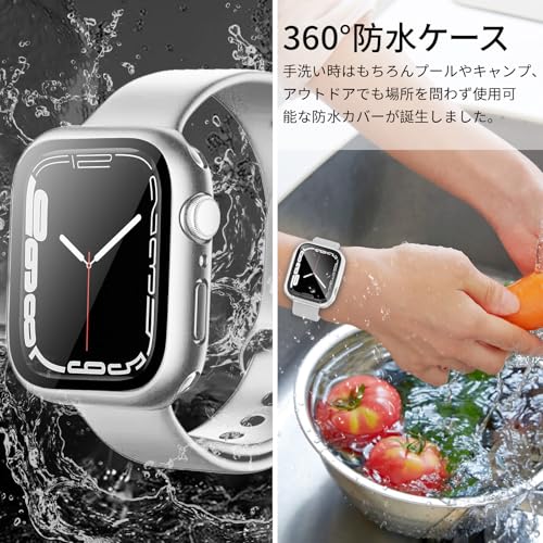 YUGYUG 対応 アップルウォッチ カバー Series 9/8/7 アップルウォッチ ケース PC素材 IP68 防水 360ど度 Apple Watch ケース ガラスフィルム 一体型 日本旭硝子材 二重構造 Apple Watch カバー 全面保護 強化ガラス キズ防止(41mm,シルバー)