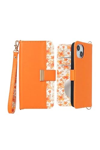 MINTY iPhone14 用 ケース iPhone13 用 ケース 両機種対応 手帳型 花柄 ストラップ付き フレグラントオレンジ