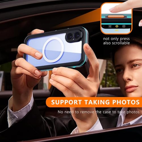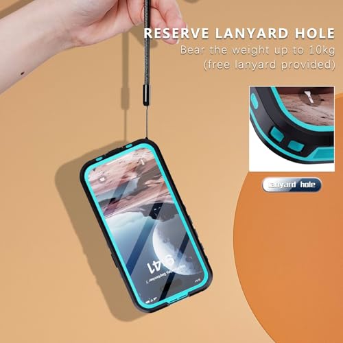 完全防水 いphone 16 Pro Max 用防水 用ケース 防塵 防雪 IP68 米軍規格 いphone 16 pro max 用ケース クリア 透明 MagSafe対応 お風呂 落下保護 水中写真 ストラップ付き 耐衝撃,ブルー