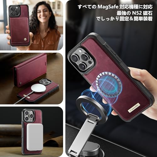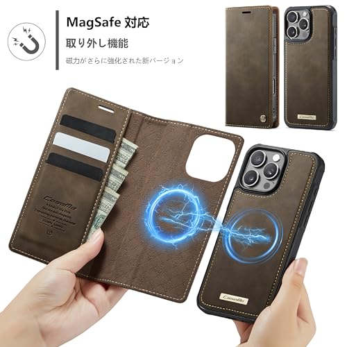 Sanlinba iPhone 17pro max ケース 手帳型 2in1 分離式 背面カード収納 レザー RFIDブロック MagSafe対応 耐衝撃 スタンド機能 横置き マグネット開閉 エッジ滑り止め 指紋防止 全面保護
