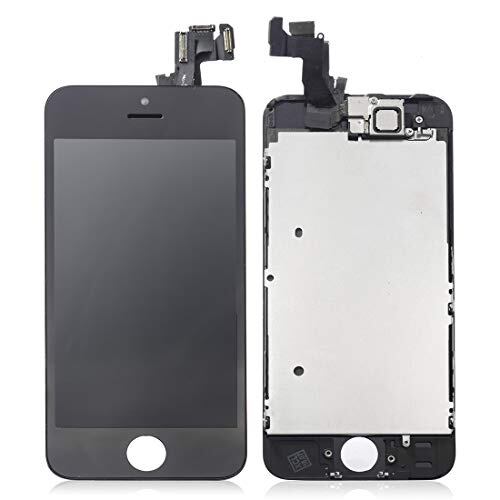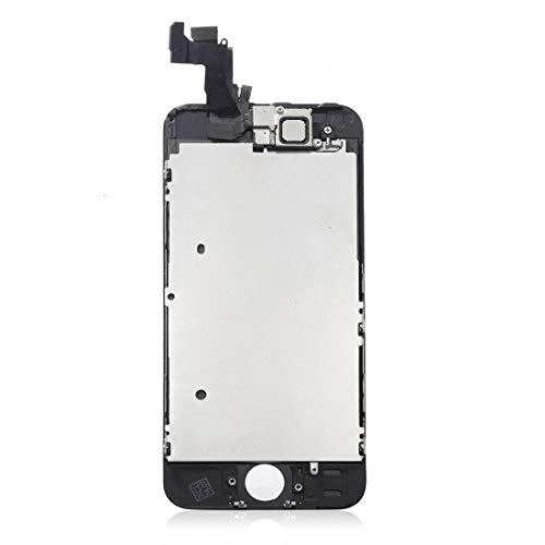 SZM iphone5S 液晶パネル 修理用フロントパネル タッチパネル タッチパネル タッチスクリーン (スピーカー +フロントカメラ付き) 修理パーツ 工具付属 ホームボタン付きません(5S, 黒)
