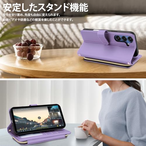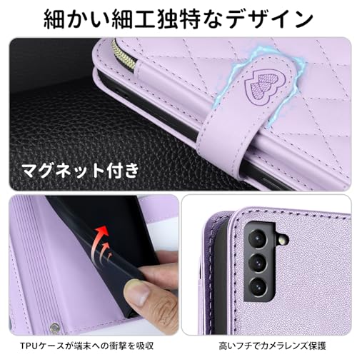 【Succtopy】Galaxy S22 ケース 手帳型 ショルダー 肩掛け 斜め掛け ギャラクシーSC-51C SCG13 携帯カバー 上質PUレザー カバー おしゃれ 刺繍 携帯ケース お洒落 大容量収納 カードポケット付き 小銭入れ 財布型 スマホケース スタンド機能 ストラップと首掛け付き 磁気バックル付き(ライトパープル)