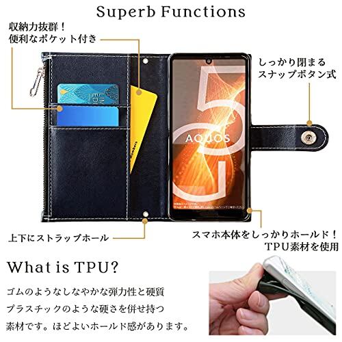 AQUOS R5G SH-51A SHG01 908SH 手帳型 ケース カバー SH51A SH-51Aケース SHG01ケース 908SHケース SH51Aケース AQUOSR5G 手帳ケース 手帳型ケース スマホケース おしゃれ部長 ネイビー
