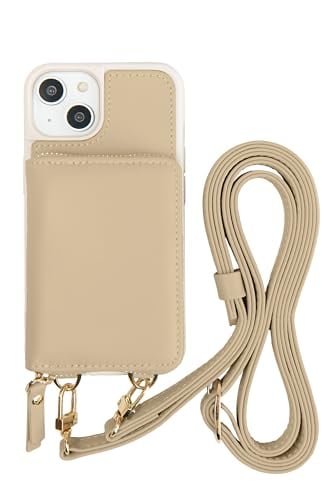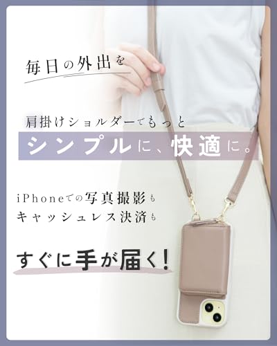MINTY iPhone14 用 ケース iPhone13 用 ケース 両機種対応 ショルダー ストラップ ウォレット付き グレージュ