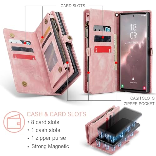 Fengyue Samsung Galaxy S24 Plus 用 ケース 財布型 カード収納 小銭入れ ワイヤレス充電 カバー 手帳型 ストラップ 付き カードポケット付き 収納ポケット 2 in 1マグネット吸着 横置き スト耐衝撃 ラップホール付き