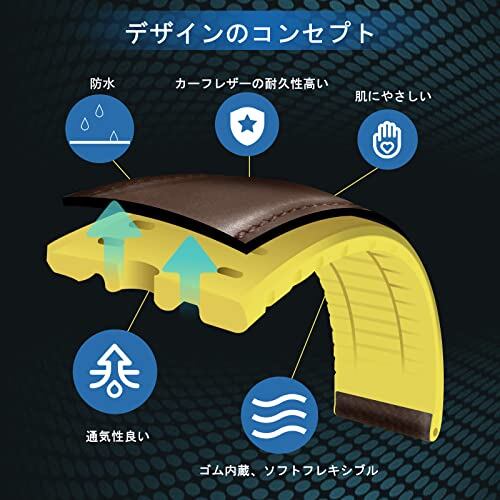 ユニークなデザイン:暑い日に革ウォッチバンドが肌にくっつくのを防ぎ、ウォッチベルトの背面は、シリコンゴムを組み合わせています。通気性のある溝のデザイン、肌に呼吸するスペースを与え、レザーストラップの重量を軽減し、着用体験を向上させます