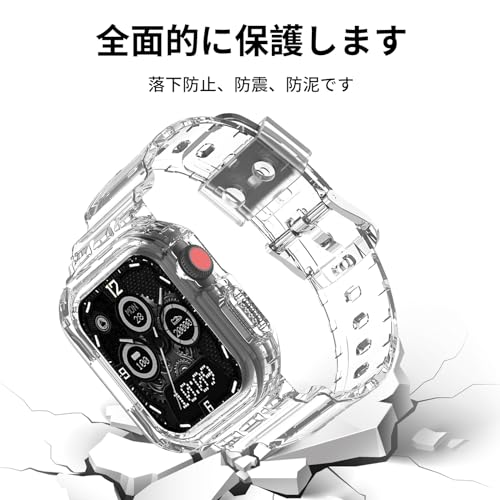 ANYOI 対応 Apple Watch バンド TPU素材製 Series 9/8/7/SE3/SE2/SE/6/5/4/3/2/1 アップルウォッチ バンド ケース 一体型 バンド 交換ベルト あっふウォッチバンド 通気 柔らかい 防水 耐衝撃 通気 男女通用(41mm/40mm/38mm,クリア)