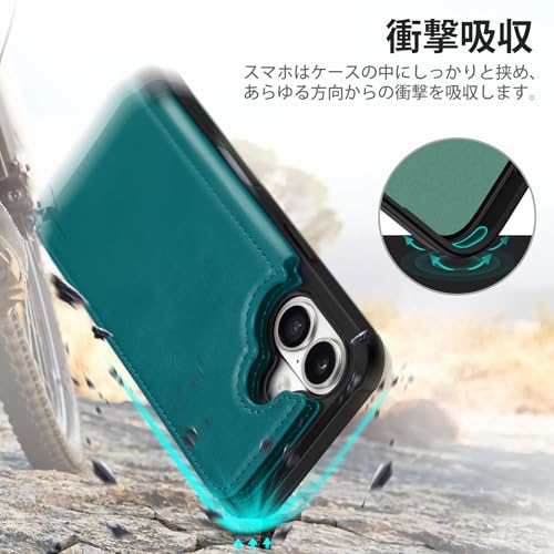 TUCCH iPhone 17 対応 ケース ショルダーストラップ付き 背面カード収納 6.3インチ PUレザー RFIDブロッキング 3つカードポケット ストラップホール付き 取り外し不可 TPU素材 滑り止め 衝撃吸収 マグネット開閉 アイフォン17 対応 携帯カバー 2025年発売 5G ティールグリーン
