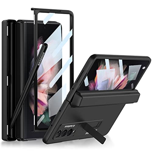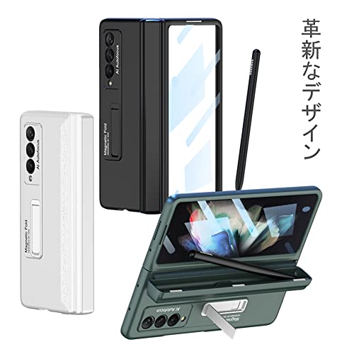 Galaxy Z Fold 3 ケース Sペン收纳 Samsung ギャラクシーZ フォールド3 5G SC-55B / SCG11 用 カバー ガラスフィルム付き Uovon スマホケース ヒンジ保護 fold3 携帯ケース スタンド付き 全面保護 軽量 薄型 · ブラック