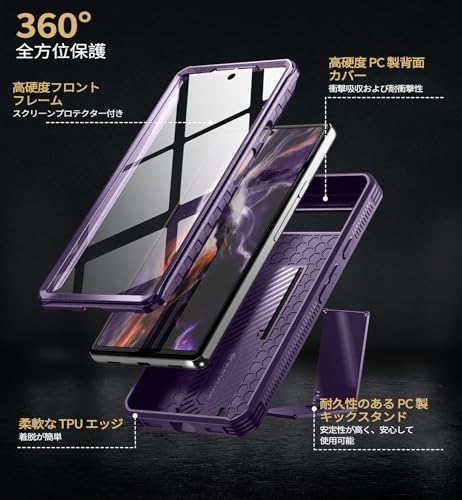 Dexnor Google Pixel 6A 5G用 ケース [内蔵スクリーンプロテクター&キックスタンド] 軍用規格 耐衝撃 強化防護カバー(パープル)