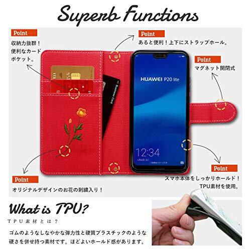 らくらくスマートフォン F-42A/F-01L 用 ボタニカル 花 刺繍 ケース/カバー/手帳型 スマホケース/カバー/手帳 花柄 レッド