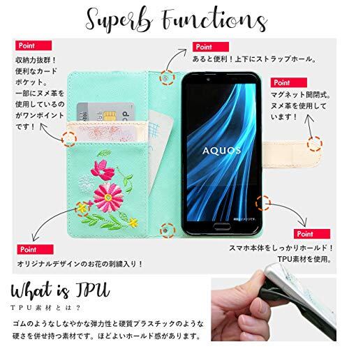 トレンドエスエスエス スマホケース [互換:XPERIA 5 III SO-53B SOG05 A103SO 対応] 手帳型 ケース カバー 手帳型ケース ちょいヌメ花刺繍 ミント