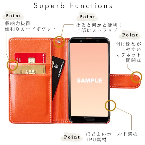 AQUOS R3 SH-04L SHV44 808SH ケース 手帳型 カバー SH04L SH-04Lケース SH-04Lカバー SH04Lケース SH04Lカバー SHV44ケース SHV44カバー 808SHケース AQUOSR3 アクオス スマホケース 手帳型ケース 手帳 部長 オレンジ
