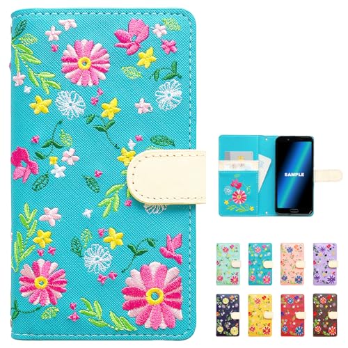 Galaxy S25 Ultra SC-52F SCG32 SM-S938Q ケース カバー 用 手帳型 手帳型ケース スマホケース SC52F SC-52Fケース SC-52Fカバー galaxys25ultra ギャラクシーS25 ウルトラ ちょいヌメ花刺繍 ターコイズ