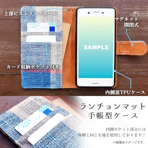 Xperia Ace SO-02L 専用 ランチョンマット風 手帳型ケース 手帳本体は職人により一つ一つ手作りで作成しております。