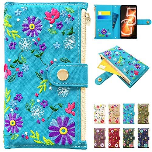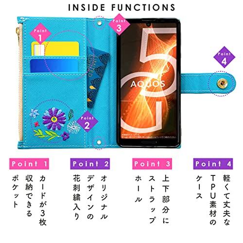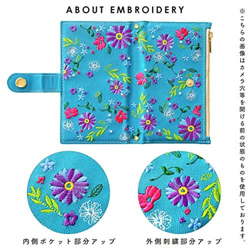 Xperia 8 SOV42 902SO 用 ケース 手帳型 カバー 手帳型ケース SOV42ケース SOV42カバー 902SOケース 902SOカバー Xperia8 手帳ケース スマホケース おしゃれ花刺繍 ターコイズ