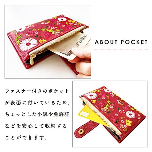 AQUOS R7 SH-52C A202SH 専用 手帳型ケース。小銭や免許証等の収納に便利なファスナー付きの手帳型ケースです。上品なサフィアーノ生地に、色鮮やかな花柄の刺繍を施しています。