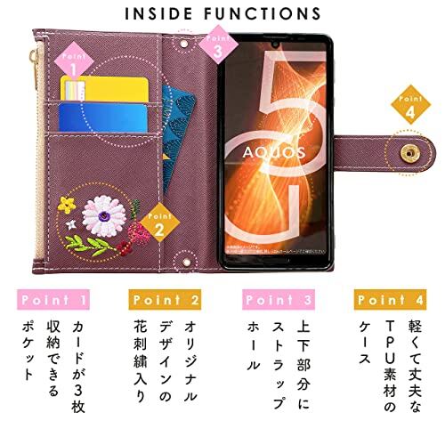Xperia 10 III SO-52B SOG04 A102SO 用 ケース 手帳型 カバー 手帳型ケース SO52B SO-52Bケース SOG04ケース A102SOケース SO52Bケース Xperia10III 手帳ケース スマホケース おしゃれ花刺繍 プラム