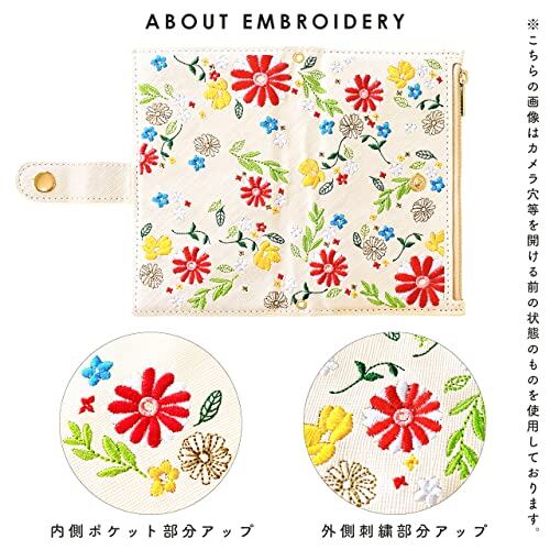 Xperia 1 SO-03L SOV40 802SO 用 ケース 手帳型 カバー 手帳型ケース SO03L SO-03Lケース SOV40ケース 802SOケース SO03Lケース Xperia1 手帳ケース スマホケース おしゃれ花刺繍 アイボリー