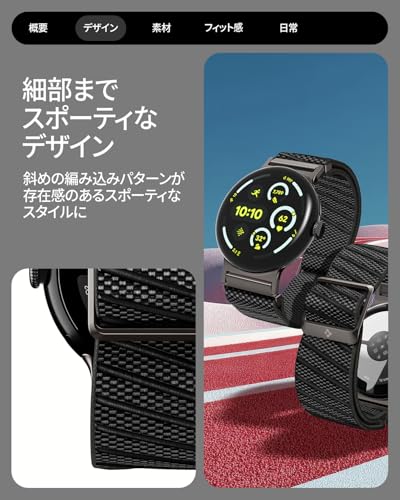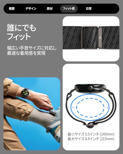 [Spigen] Pixel Watch 4/3 45mm バンド【軽量で柔軟なストラップ】 ファブリック素材 時計バンド 通気性 長さ調整可能 ライト・フィットX AMP09487 (ブラック)