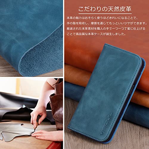 VISOUL iPhone 13Pro Max ケース 手帳型 本革 レザー 全面保護 マグネット式 カード収納 アイフォン13Pro Maxケース 横置きスタンド機能付き手帳型ケース 2021年発売 iphone 13ProMax対応 6.7インチ 青