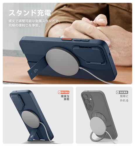 SURITCH マグネット式ケース Samsung Galaxy S25 Plus対応 カメラカバー&キックスタンド付き 耐衝撃バンパーケース スリム保護カバー Galaxy S25 Plus用 - 青