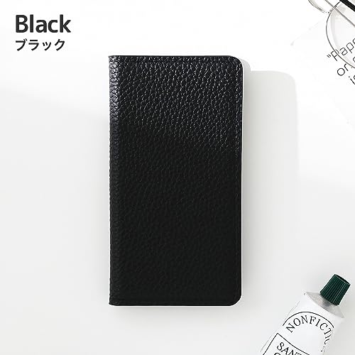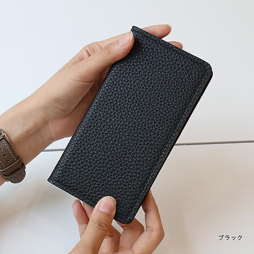 シュリンクレザー 手帳型 スマホケース iPhone XS X 互換性 対応ケース 本革 カード入れ マグネット不使用 (ブラック)