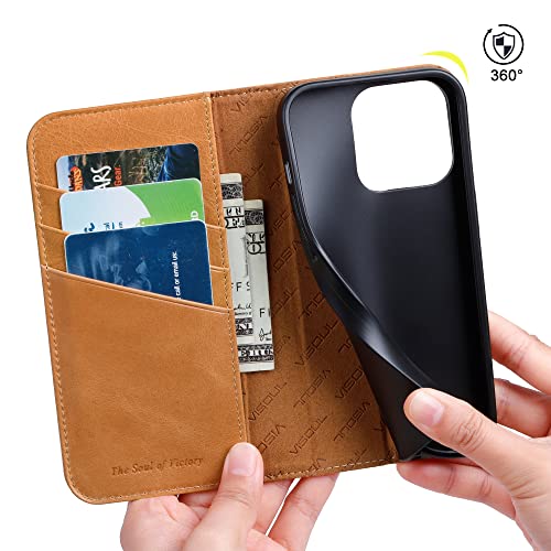 VISOUL iPhone14 Pro ケース 手帳型 本革 カードポケット アイフォン14 Pro ケース 手帳型 本革 レザー スマホケース iPhone 14 Pro 手帳ケース カード収納 衝撃吸収TPU素材 携帯ケース 全面保護 マグネット 横置きスタンド アイホン14 Pro iphone 14 Pro 対応 6.1インチ キャメル