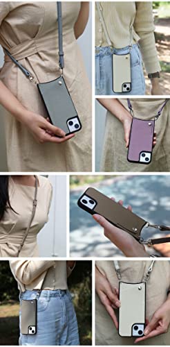 本革 スマホケース iPhone用 17 Pro 互換性 対応ケース スマホショルダー ショルダーケース カード収納 ロングストラップ (アイボリー)