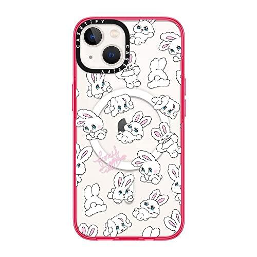 コンパクト iPhone 14 ケース [MIL規格準拠 (2x MIL-STD-810G)/1.2mからの落下テストをクリア/MagSafe に対応] - Bunnies by foxy illustrations - Hot Pink