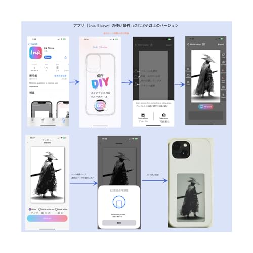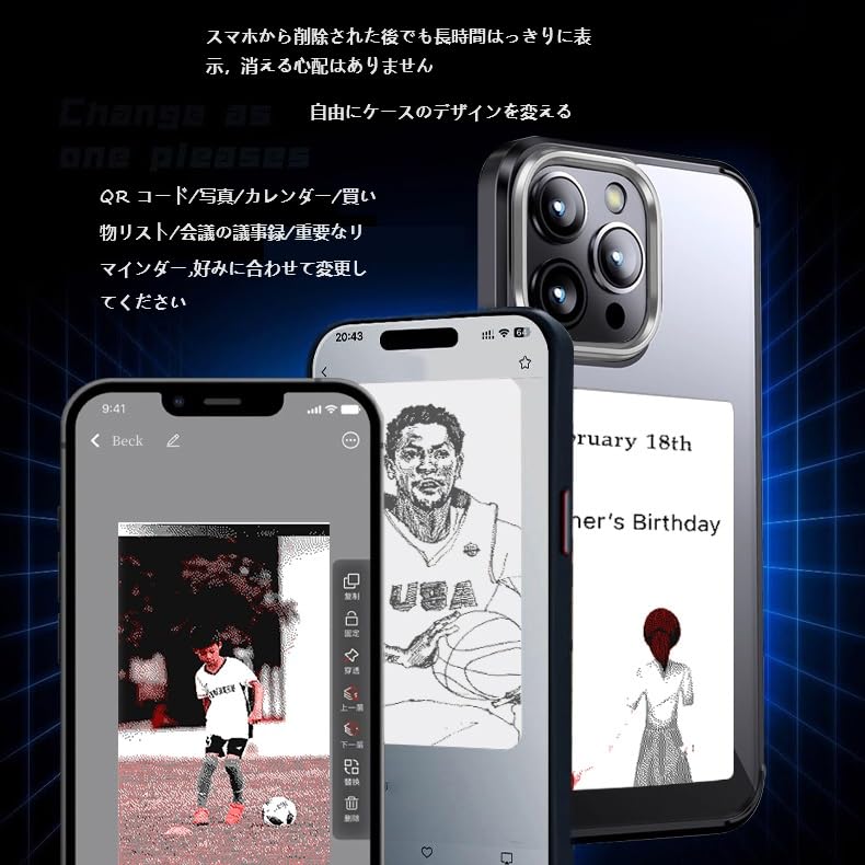 【新技術の応用】NFC技術により、ケースのスクリーンにカスタマイズされた画像を直接転送することができます。省エネのInkスクリーンは、画面表示に電力を一切消費していません。スマホの電源をオフにしたり、ケースを取り外したりした場合でも、画像は永続的に表示されます。